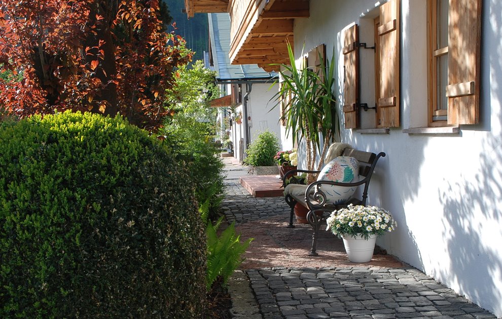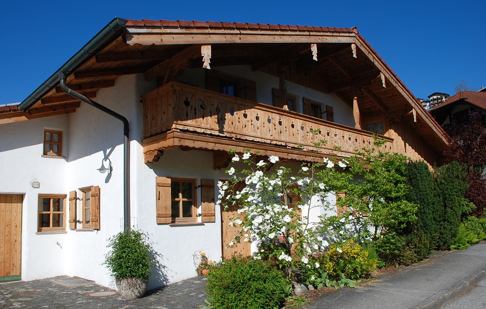 Unser Haus wurde 1935 gebaut und in den 90iger Jahren komplett renoviert. Es liegt in ruhiger (Zone 30) und sonniger Südostlage am Rande des Ortskerns von Berchtesgaden.